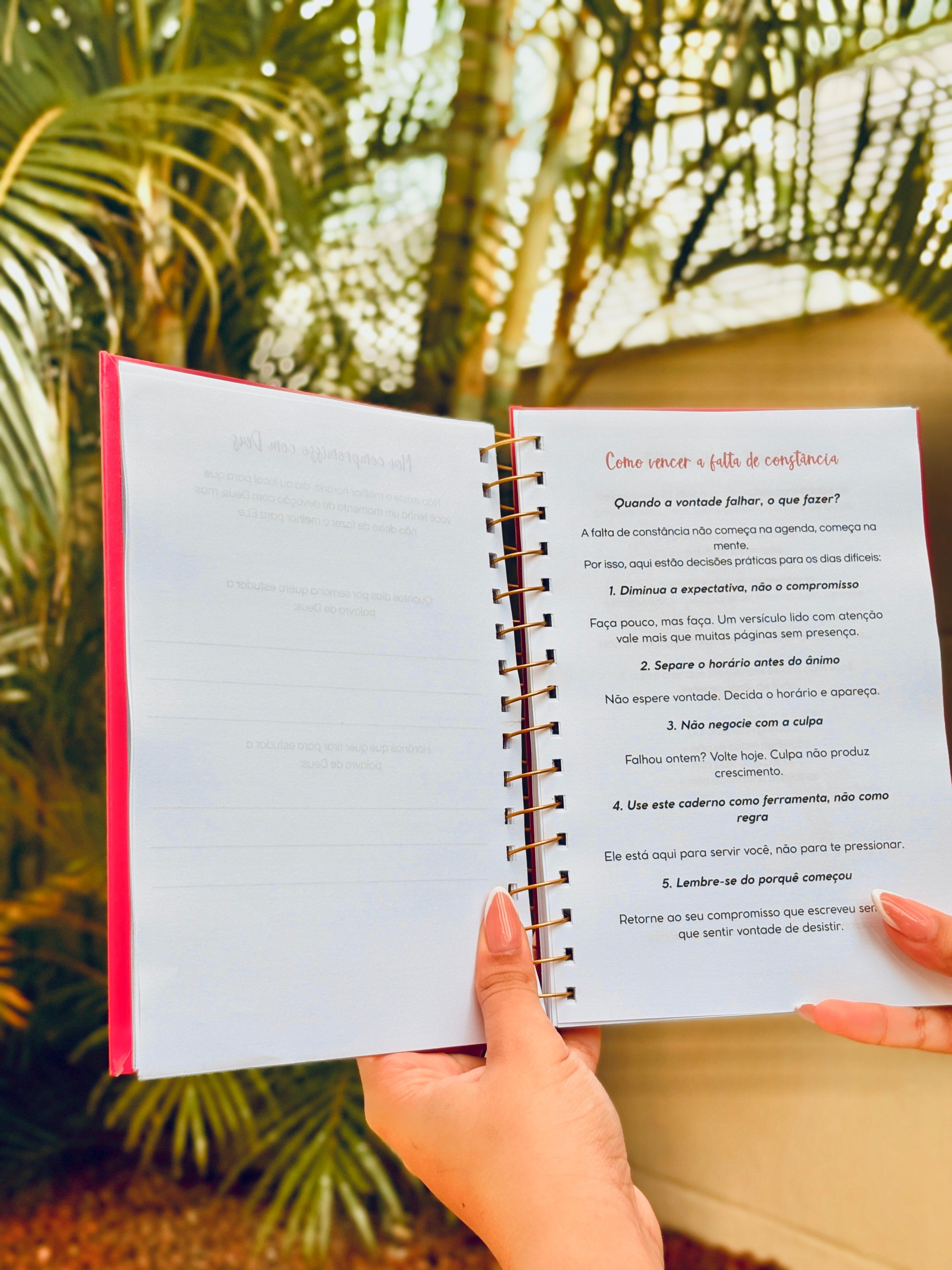 Caderno cristão guiado para mulheres que desejam criar constância com Deus e compreender a Palavra.