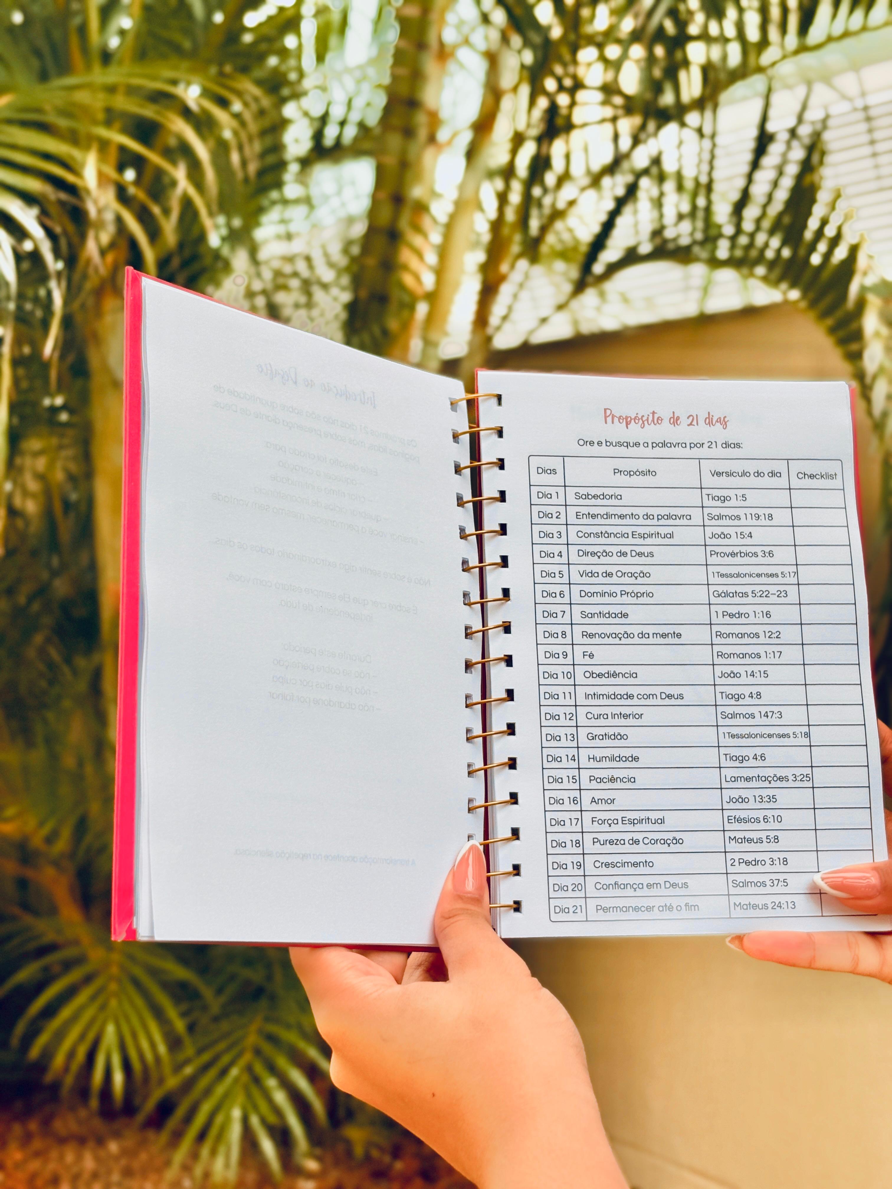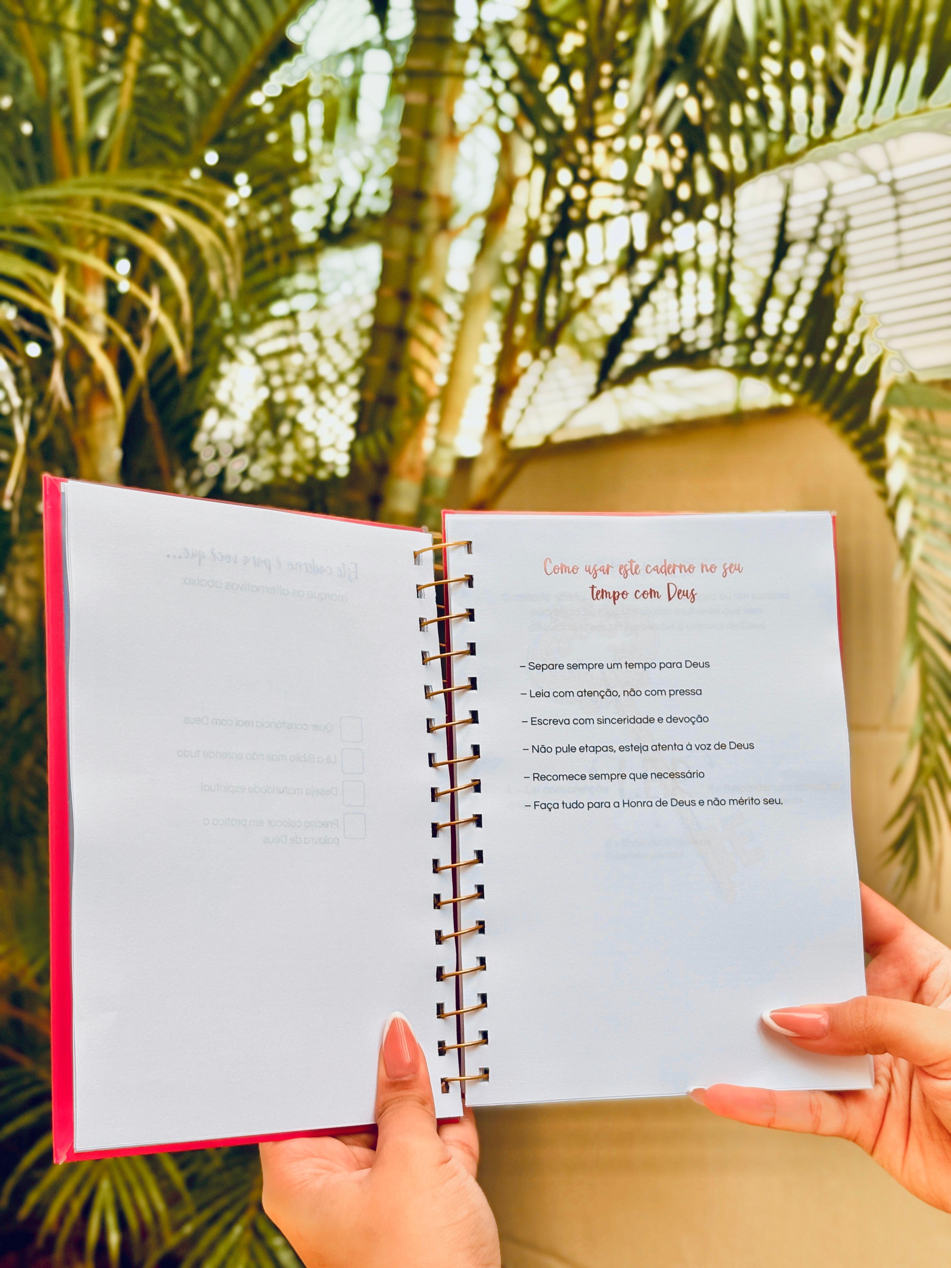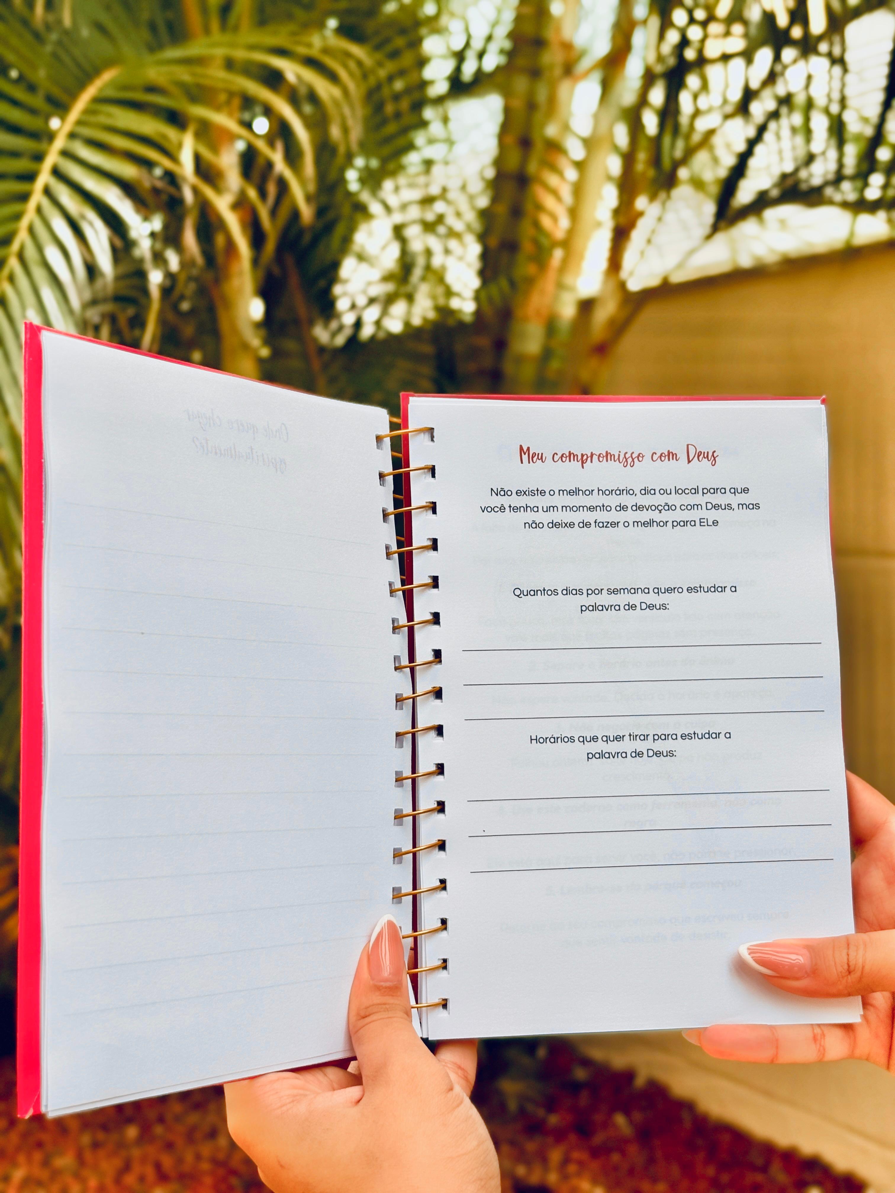 Um caderno cristão guiado para mulheres que desejam compreender a Palavra de Deus com mais clareza, viver uma rotina espiritual organizada e desenvolver intimidade com Deus de forma leve e prática.